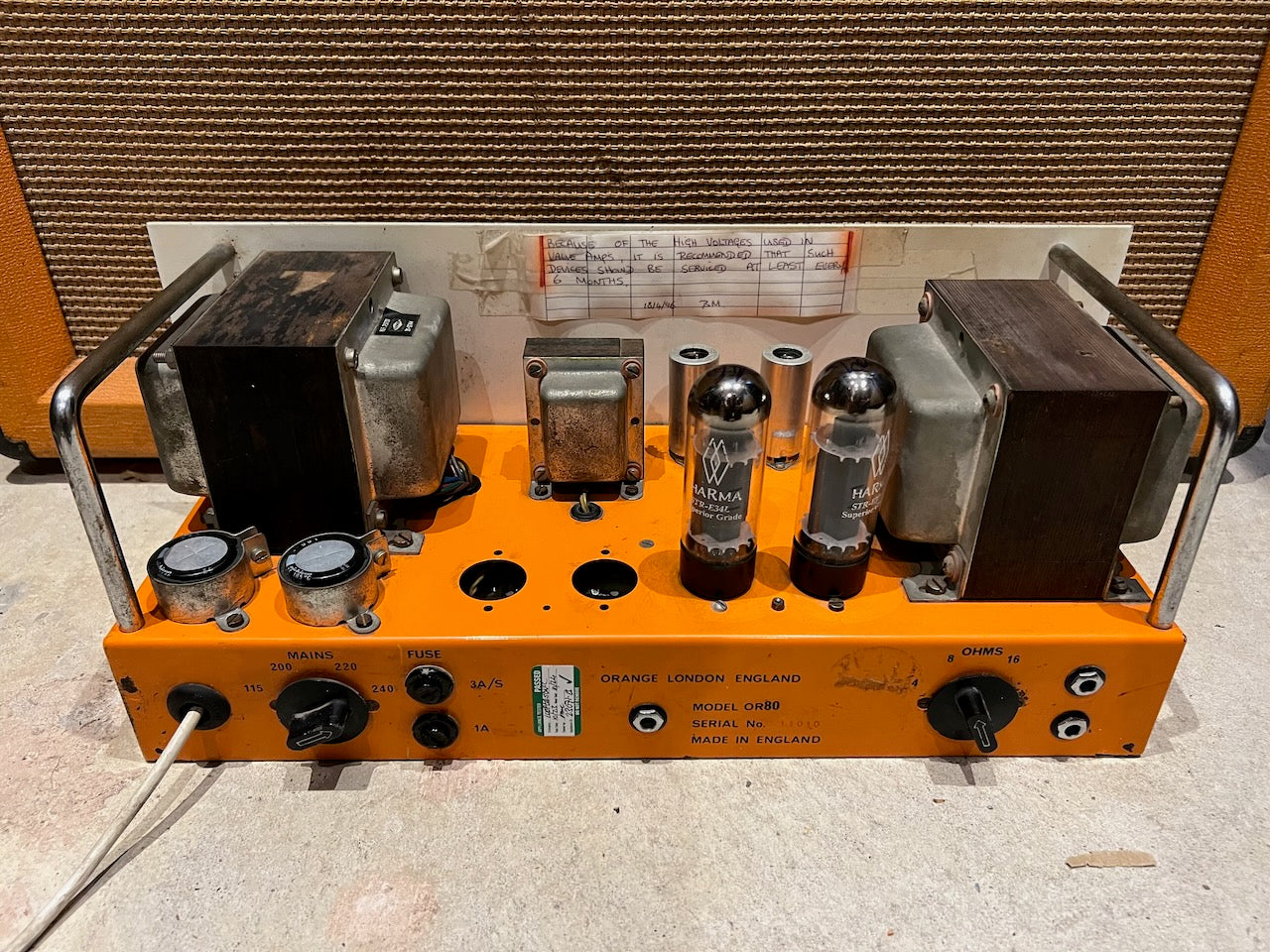 I am so excited to offer this stunning amplifier. I got an email a few weeks back from the original owner of this who had bought it in the 1970s and it was now sat on the top floor of his storage unit, unused. I was so excited to get it in its full stack glory - with this being the head from it! The head dates to very early 1974 and is in wonderful condition as the rarer OR80 version. The three transformers are all original to the amplifier.