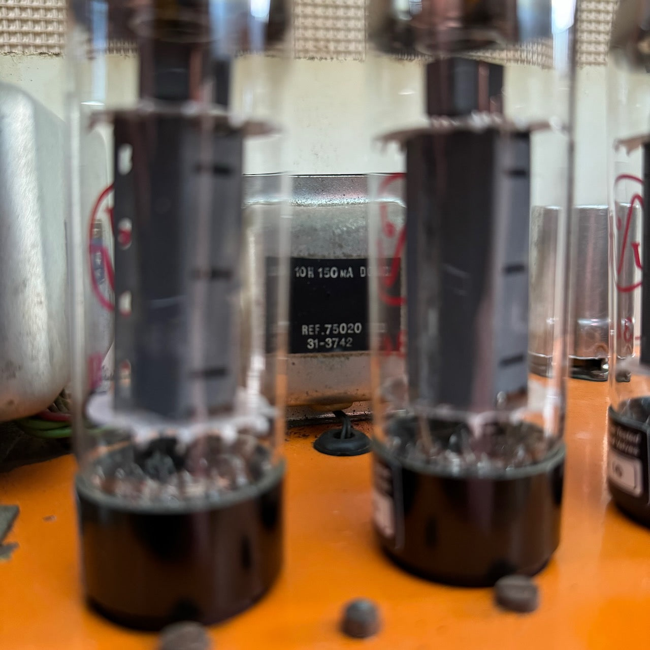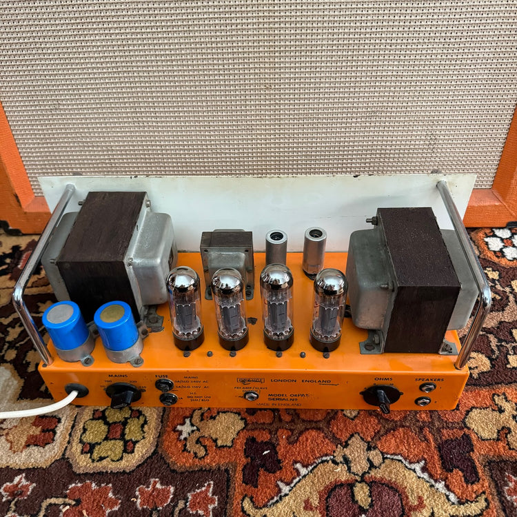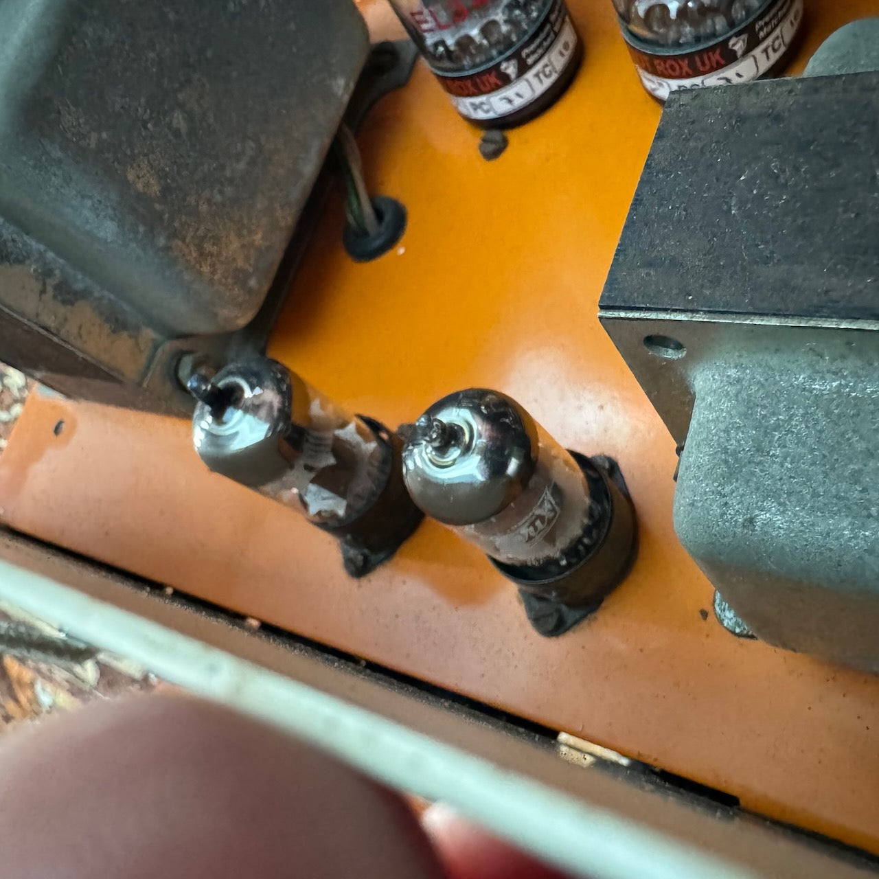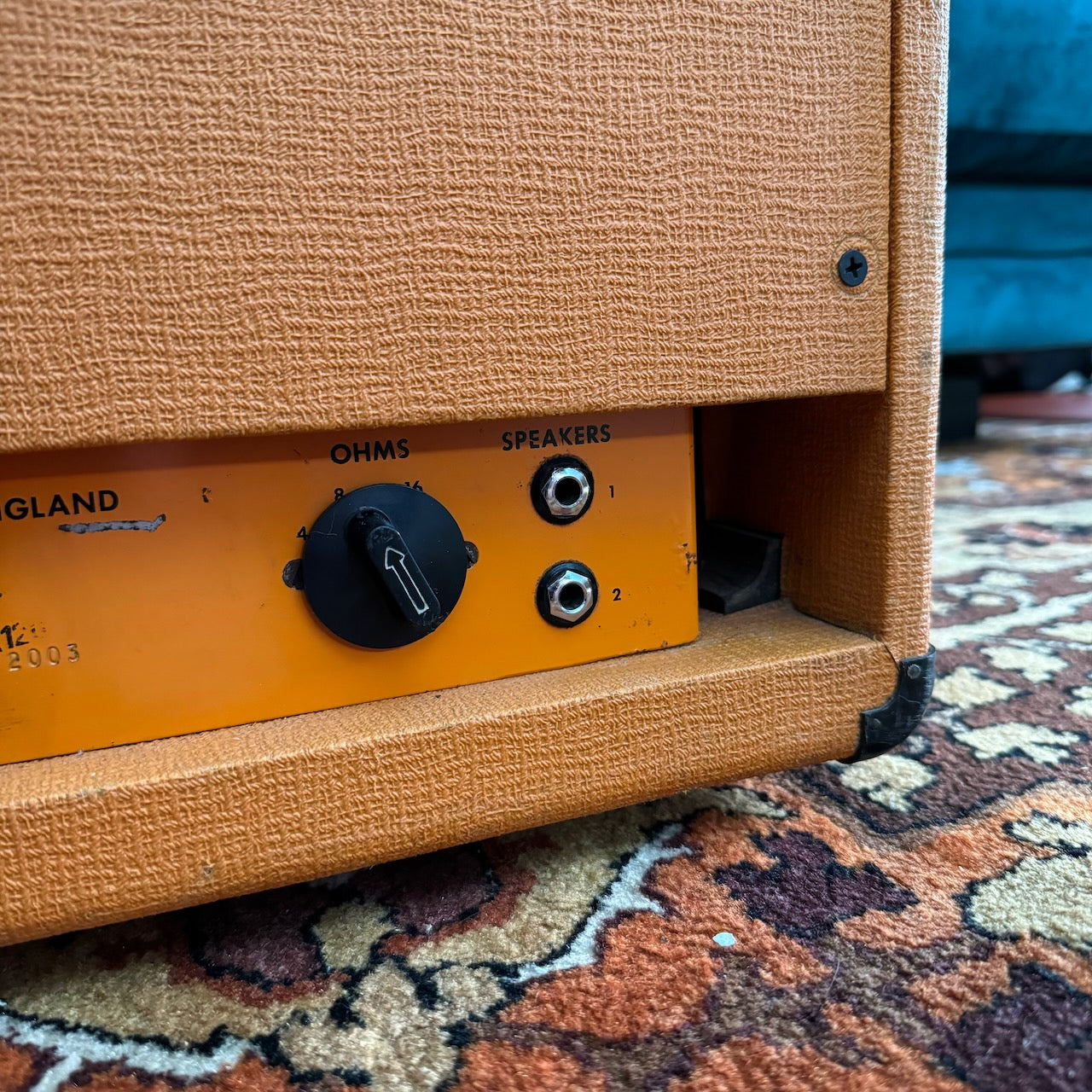I recently got the opportunity to purchase this beauty from the long term owner. He'd had this for ages, pretty much unused for decades, so it was time for a new home to be found/. It's a late 1974 (possibly early 1975) Orange PA120 head with the Pics & Text. It's in original condition inside, including all 3x transformers. It needed a brand new quad of JJ EL34 power valves installed alongside the 2x original preamp valves.