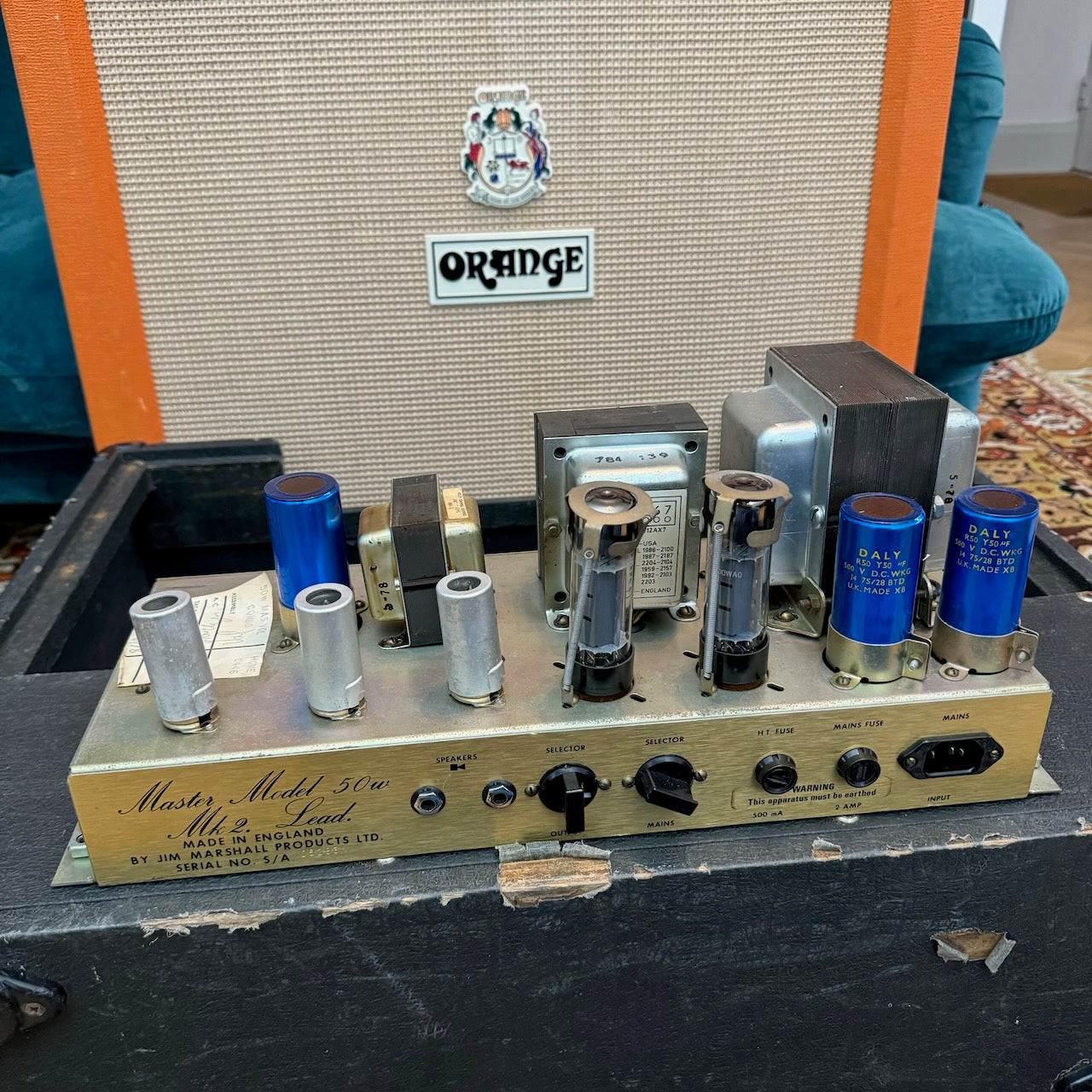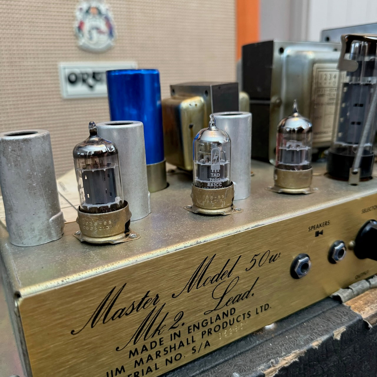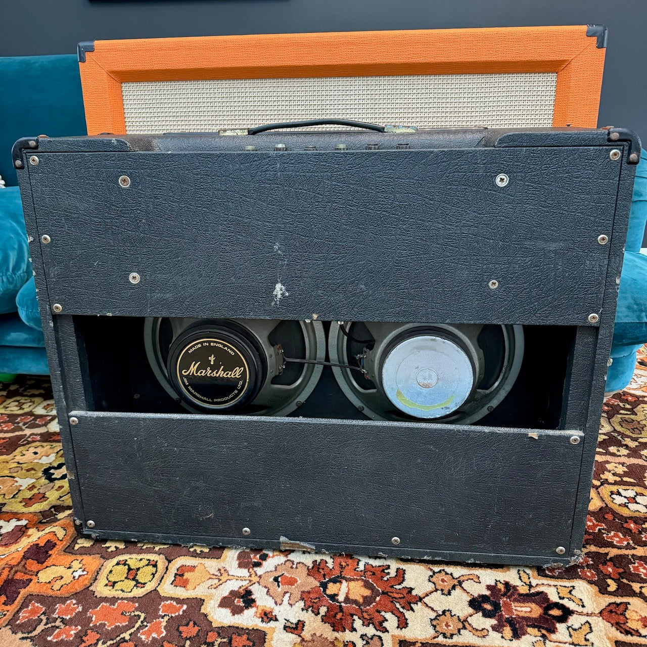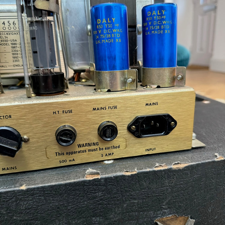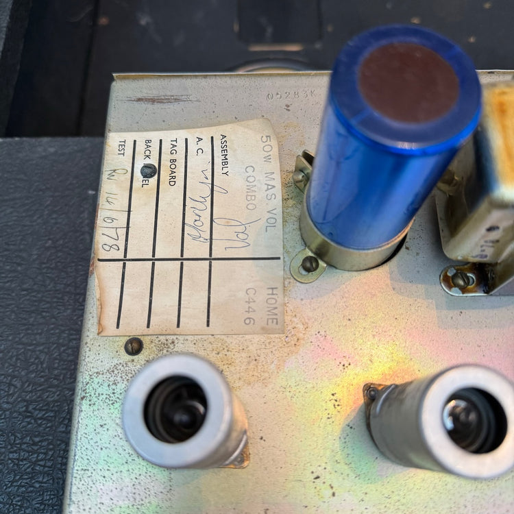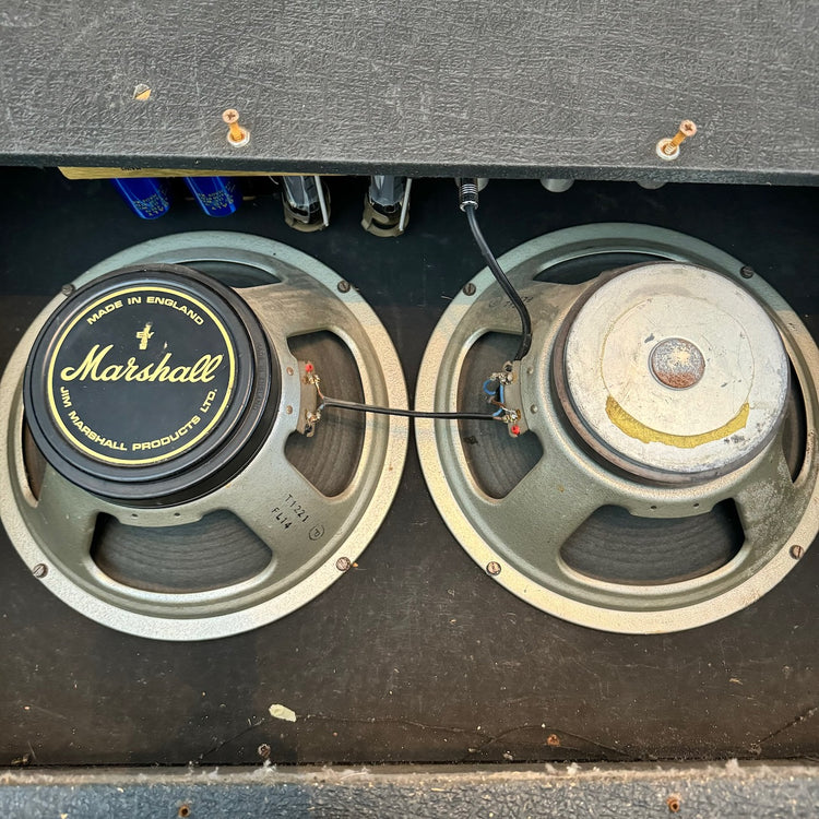 This is one of the best 50w Master Model Lead 2x12 Combo versions of this classic amplifier I've heard. It's got a lovely pair of original G12 Celestion T1221 speakers dating to 1978, complete with their original cones. The original transformers all work well and are dated to 1978 also. The power valves are a pair of period EL34s (possibly original), alongside a set of newer ECC83s. Cosmetically it is in very good condition, as you can see, with hardly any bumps and scrapes.