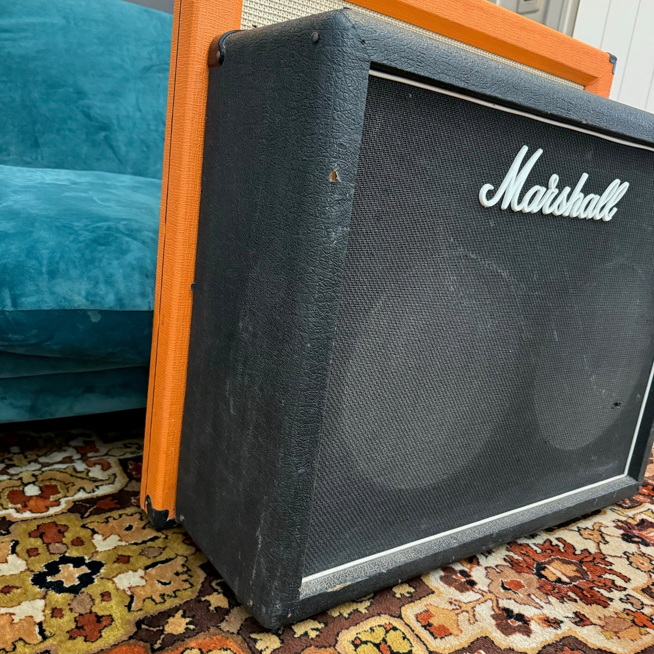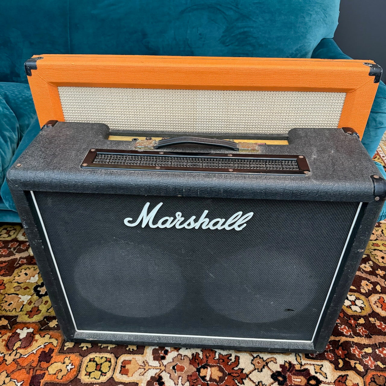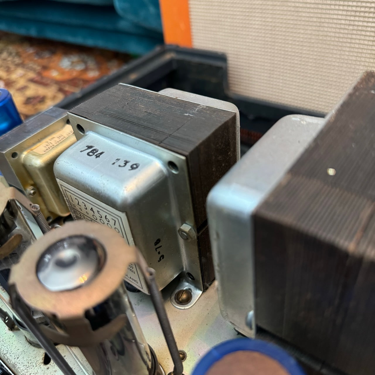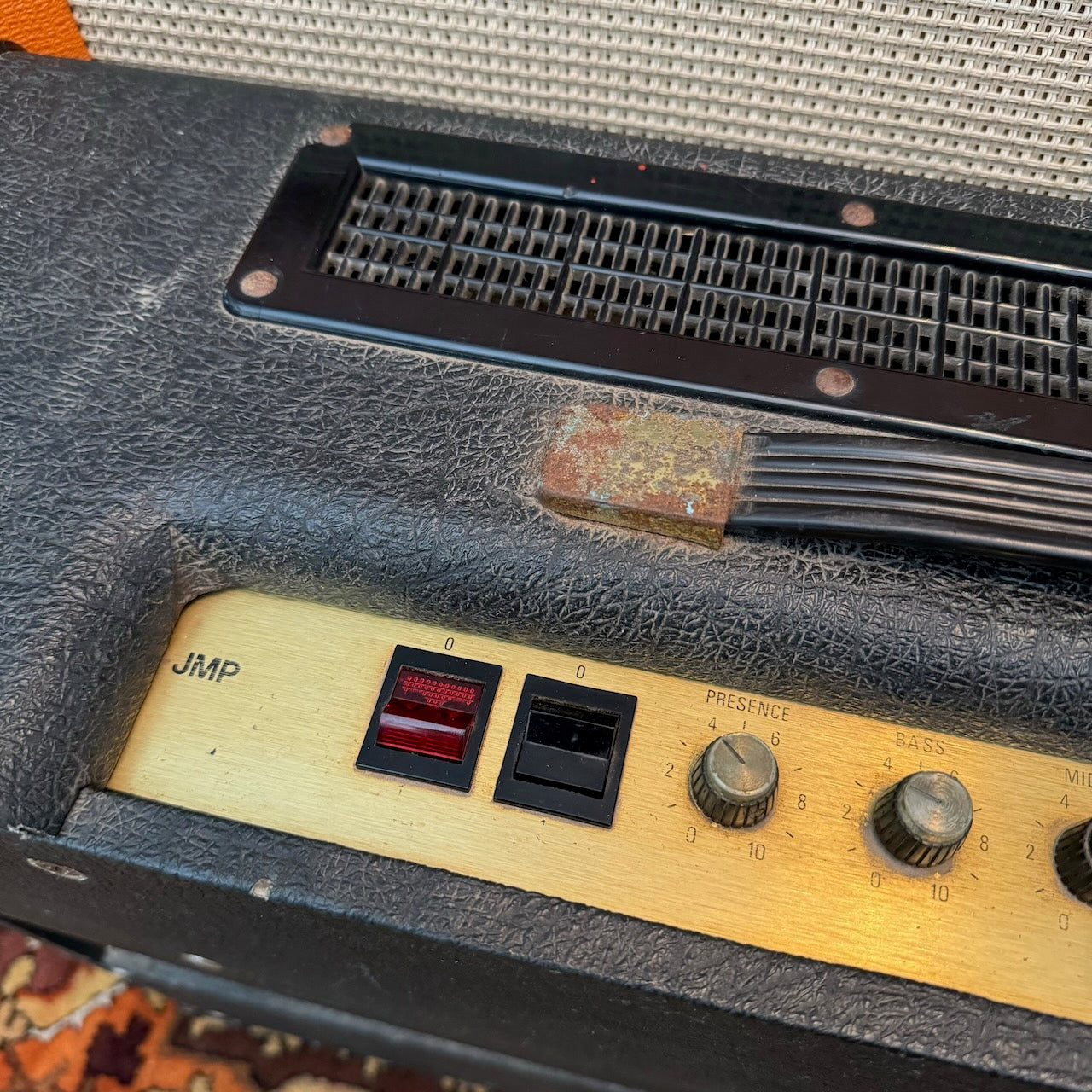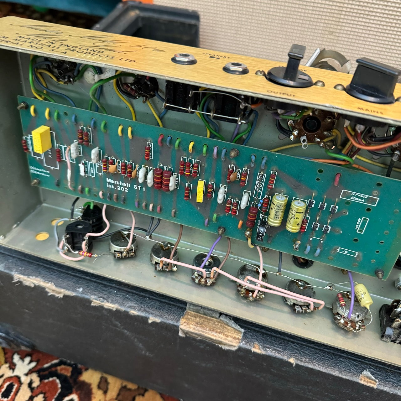 This is one of the best 50w Master Model Lead 2x12 Combo versions of this classic amplifier I've heard. It's got a lovely pair of original G12 Celestion T1221 speakers dating to 1978, complete with their original cones. The original transformers all work well and are dated to 1978 also. The power valves are a pair of period EL34s (possibly original), alongside a set of newer ECC83s. Cosmetically it is in very good condition, as you can see, with hardly any bumps and scrapes.