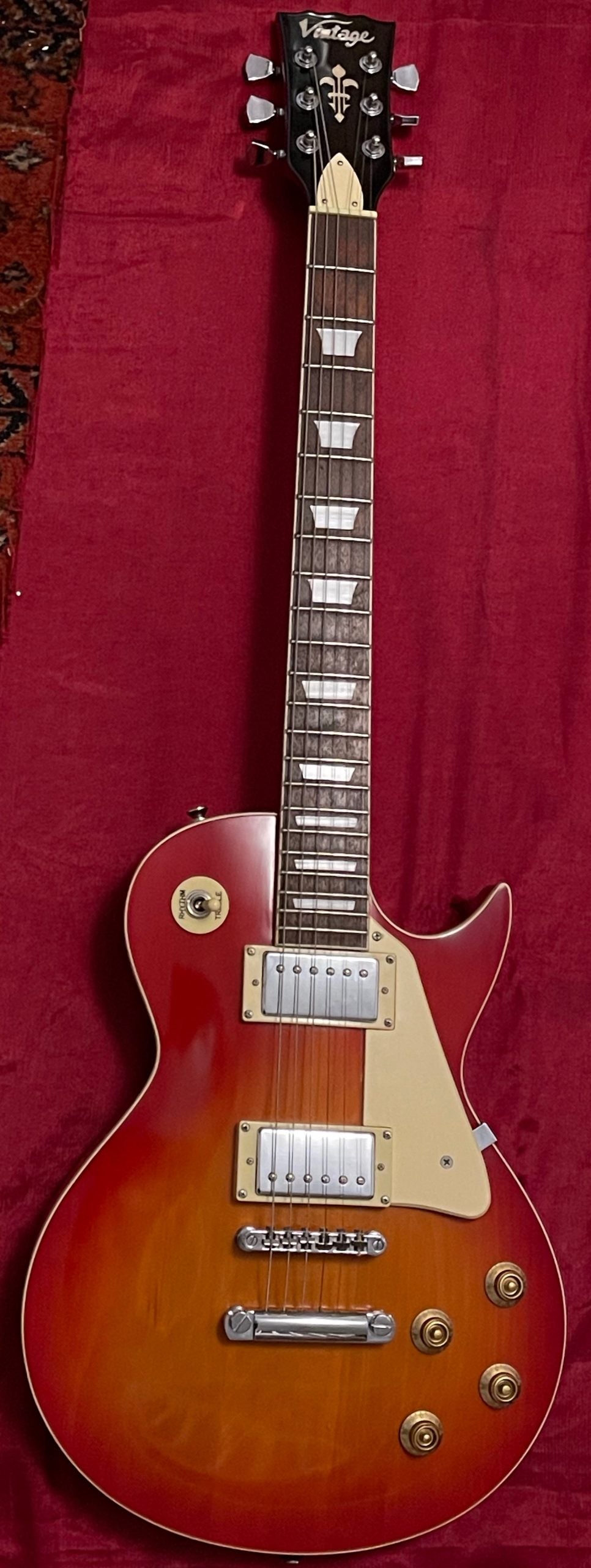 Vintage V100, Finished in cherry sunburst its in fabulous condition virtually mint. it plays really well. It weighs 3.42kg. It comes complete with a nice padded Stagg gig bag